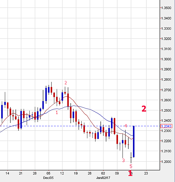 日線圖上英鎊的波浪結構得以確認.確定是我前一篇分析中第一種組合