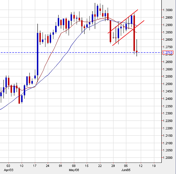 英鎊日線圖上這個下降旗型以然完成